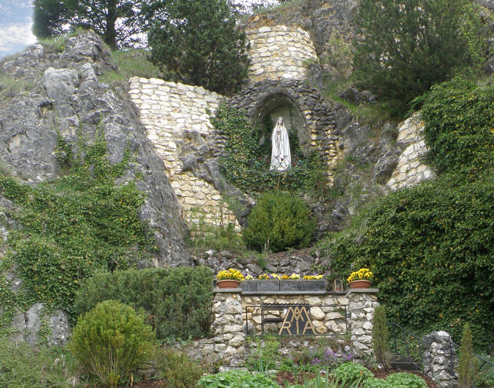 Unterhalb des grossen Felsen am Stettberg befindet sich die Mariengrotte. Ein gut ausgebauter Rad/Wanderweg führt Sie direkt dorthin.